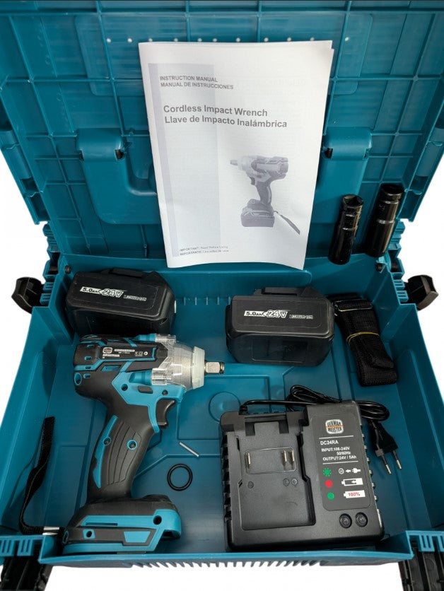 Pistol impact German Meister 24V 5Ah cu 2 acumulatori și tubulare